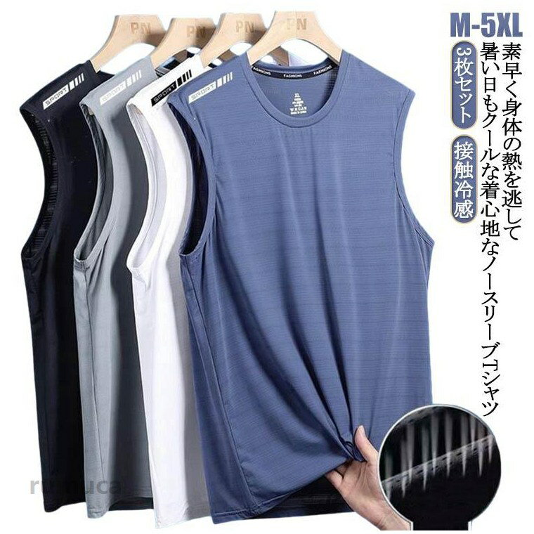 3枚セット 接触冷感 タンクトップ メンズ ノースリーブ Tシャツ 薄手 夏 メッシュ ドライ 吸汗速乾 涼しい 袖なしTシャツ 無地 スポーツ