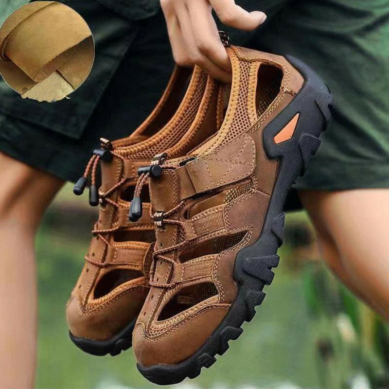 サンダル メンズ スリッポン 革サンダル カジュアルサンダル メッシュサンダル 柔らかい 通気防臭 一足両用 ウォーキング 日常