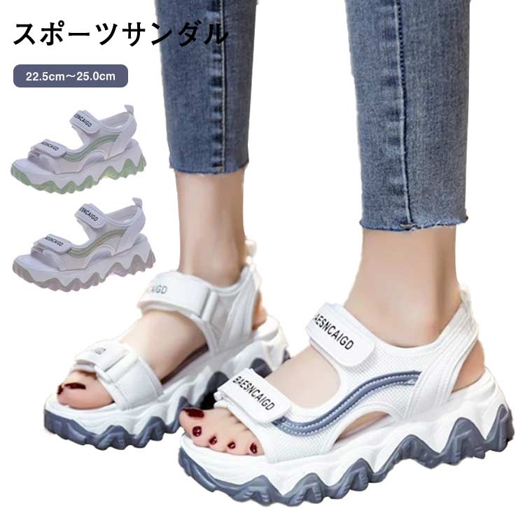 サンダル レディース 厚底 スポーツサンダル ビーチサンダル ベルクロ 超纤 ラウンドトゥ 防滑 粘胶鞋 カジュアル 白 黒