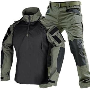 メンズ 上下セット サバゲー 作業着 ミリタリーtシャツ 長袖 迷彩柄 戦闘服 日焼け防止 防寒 耐久性 G3 ハーフジップ アメカジ