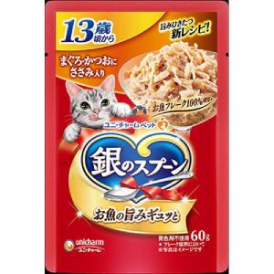 ユニチャーム 銀のスプーンパウチ 13歳頃から まぐろ・かつおにささみ入り 60g