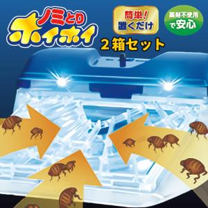 猫ノミ駆除 捕獲 ノミ取り お徳用 置くだけ ノミ アレルギー 薬剤不使用 安心 光 誘引 粘着シート 乾電池 電子ノミとりホイホイ 本体セット2個