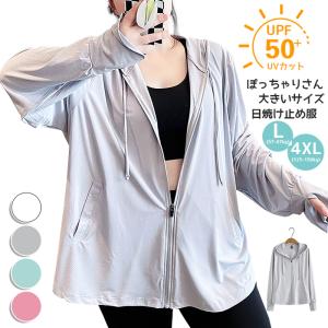 パーカー ぽっちゃりさん 大きいサイズ 接触冷感 日焼け止め服 UVカット レディース ラッシュガード トップス