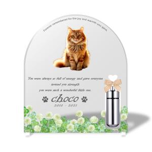 【ペットメモリアル】ペット位牌 犬 猫 名入れ おしゃれアクリルプレート オーダーメイド デザイナー仕上げ 日本製 メモリアルカプセル (シロツメクサ, クリア)