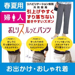 おしりスルッとパンツ カチオンライト 高齢者 ズボン S.M.L.LL3L 軽量 ウエストゴム 滑りやすい素材 引き上げやすい リラックスパンツ 婦人