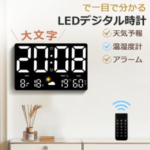 デジタル時計 大型 時計 壁掛け リモコン付き デジタル 置き時計 壁掛け時計 目覚まし時計 掛け時計 温度計 アラーム 大文字 光る 天気 温度表示 大画面 明るい