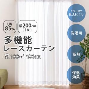 多機能ミラーレースカーテン 幅200cm 丈135〜260cm ドレープカーテン 防炎 遮熱 アレルブロック 日本製 ホワイト 33101253