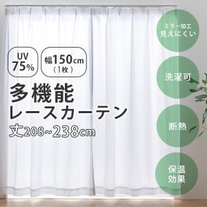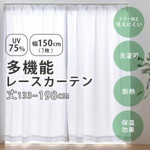 多機能ミラーレースカーテン 幅150cm 丈135〜260cm ドレープカーテン 防炎 遮熱 丸洗い 日本製 ホワイト 33101205