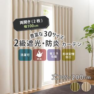 2級遮光 防炎カーテン ドレープカーテン 幅100cm(2枚組)丈105〜200cm ウォッシャブル 消防法 洗濯 遮光カーテン 既製 無地 おしゃれ 新生活 ステイシー