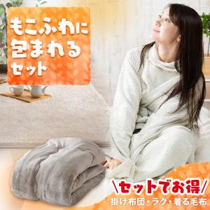 \あったか 寒さ対策 3点/ カーペット シャギーラグ 2畳 洗える アイボリー 毛布 ルームウェア 着る毛布 掛け布団 シングル 洗える グレージュ 軽量 冬用