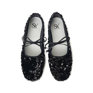 パンプス バレエシューズ レディース 黒 フラットシューズ セミスクエアトゥ フラット リボン ぺたんこki5