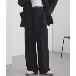 スラックス TRストレッチスーツ地 ストレート 1タック センタープレス ワイドパンツ/スラックス メンズ レディース