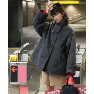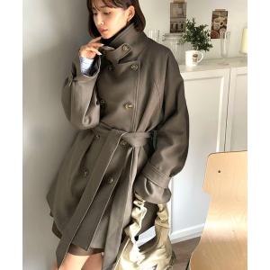 ステンカラーコート コート 360度上品魅せ。2way スタンドカラー ボリュームスリーブ ニットモッサ ロング チェスター オーバーサイズ コート