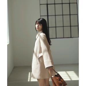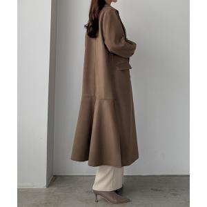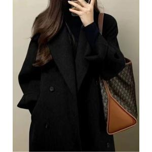 コート チェスターコート さっと、羽織るだけで高級感。フェイクウールダブルテーラードロング丈コート レディース