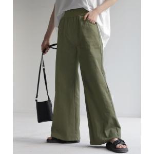 パンツ レディース 脚長 チノパン ロング ワイドパンツ ストレート ゴム 黒 白 ベージュ