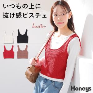 トップス ビスチェ ニット セーター ノースリーブ 透かし編み コンパクト 綿混 ガーリー 夏 白 黒 レディース Honeys ハニーズ 透かし編ビスチェ