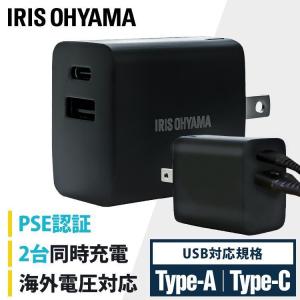 USB充電器 2ポート スリム コンセント スマートフォン タブレット モバイル機器 急速充電 コンパクト 折りたたみ PSE B IQC-C242 アイリスオーヤマ