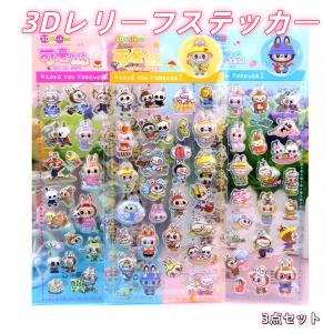 3D レリーフステッカー 3枚セット ラブブ ギフト デコシール 立体シール カラフル らぶぶ風 かわいい ボンボンドロップ風