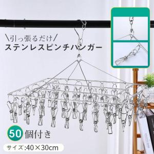 送料無料 ハンガー 引っ張るだけ ステンレスピンチハンガー さびにくい 横持ち 50個付き アルミハンガー 室内干し 屋外干し 物干し フック付き 洗濯バサミ