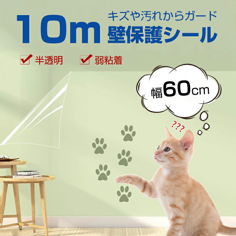 壁紙保護シート 60cm×10m 壁紙 壁汚れ防止 落書き防止 透明 はがせる壁紙シール ペット ひっかき傷 防止 シート猫 ネコ 爪研ぎ防止シート 壁紙 ツメ傷保護シート 爪とぎ 家具保護 壁の傷 汚れペットしつけ 猫ひっかき防止 対策保護シート DIY 賃貸
