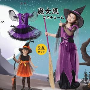 ハロウィン コスプレ 子供 衣装 キッズ 魔女 ウィッチ 女の子 女児 お化け デビル パーティー カボチャ コスチューム 仮装 ワンピース 学園祭 文化祭 演出服