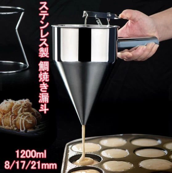 チャッキリ 種落し 1200ml 漏斗 たこ焼きツール フィッシュボールファンネル スタンド付き たこ焼き 鯛焼き漏斗 鯛焼きロート 今川焼 大判焼き パン ケーキ ステンレス製 注ぎが簡単 クレープ たこ焼き ツール 業務用 家庭用 料理用品 直径 8mm 17mm 21mmスタンド付