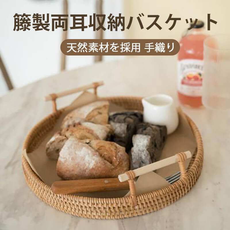お買い物マラソン【P5倍】籐製両耳収納バスケット 菓子皿 果物トレイ 小物入れ 菓子皿 果物トレイ 小物入れ 小物置き お菓子入れ 籐製 トレイ 収納トレイ 丸型 手織り 安全 耳付き ハンドル付き インテリア雑貨 収納雑貨 手織り