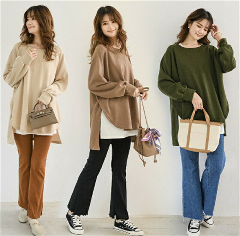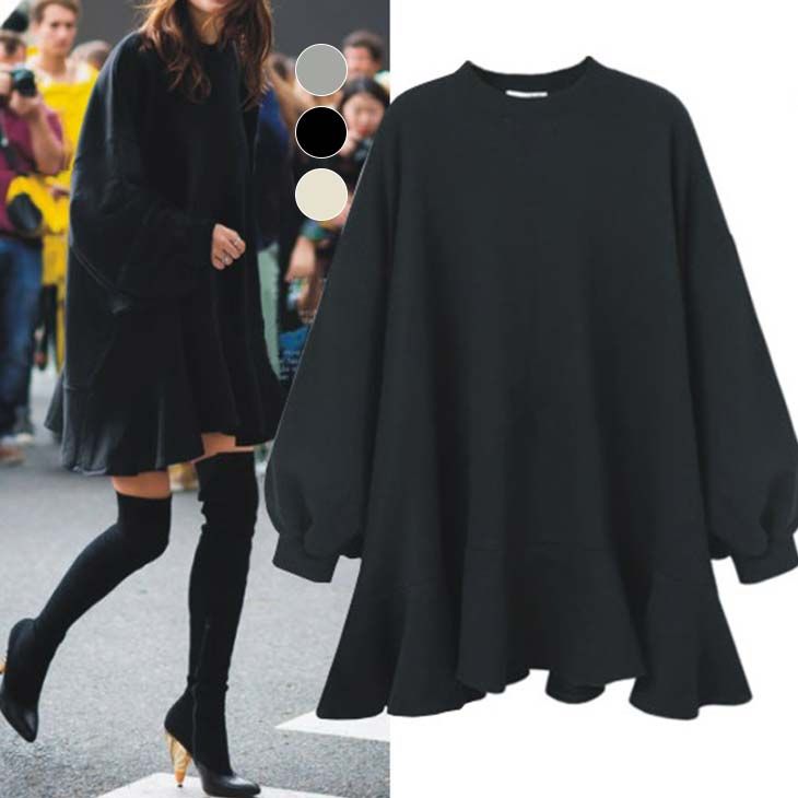2023秋冬新作 トレーナー 裾フリル 大きめ オーバーサイズ 長袖 トップス カジュアル ゆったり 体型カバー おすすめ レディース オシャレ プチプラ 韓国ファッション