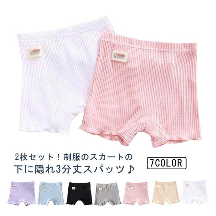 オーバーパンツ 3分丈 スパッツ 2枚組 三分丈スパッツ アンダーパンツ 綿 コットン 女の子 キッズ ジュニア ペチコート ペチパンツ インナーパンツ 通学 幼稚園 通園 学生 制服 スカート 安全ショーツ 下着 フリル 裾 快適 ストレッチ インナーパンツ 100cm-160cm