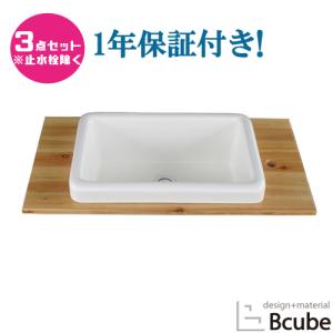 洗面ボウル 手洗器 セット 置き型 長角型 角型 48cm×37.5cm 洗面器 (手洗い鉢 混合水栓 排水セット) DIY