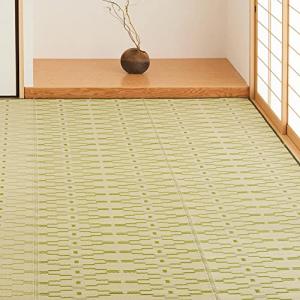 萩原 PP柄上敷き グリーン 江戸間4.5畳 「柳(やなぎ)」 い草風 ラグ 柄上敷き 花ござ 水洗いOK