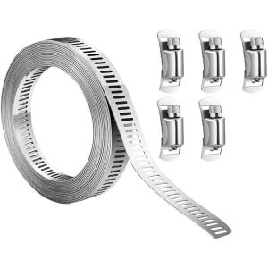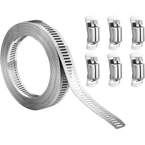 FINGOOO ホースバンド 304ステンレス 幅8mm×長さ3M・留め具8個 自在バンド バイクパーツ マフラーバンド 調整可能 強力固定 汎