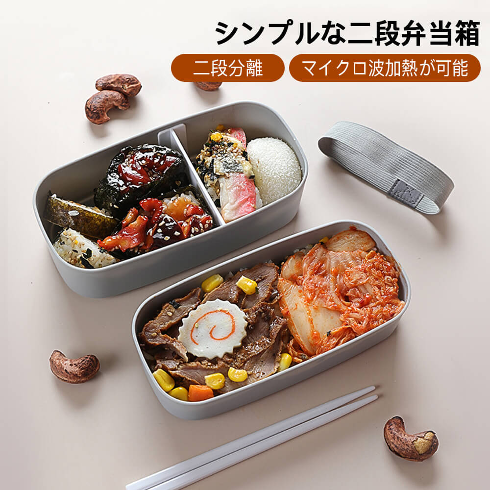 お買い物マラソン【P5倍】二段弁当箱 つや消し二段弁当箱 食器付き/持ち運びが簡単 内蓋付き マイクロ波加熱が可能 シンプルな二段弁当箱 二段分離 弁当箱 大容量 お弁当 軽量な弁当箱 食品グレードのPP素材 男子 女子 大人 子供用 弁当箱