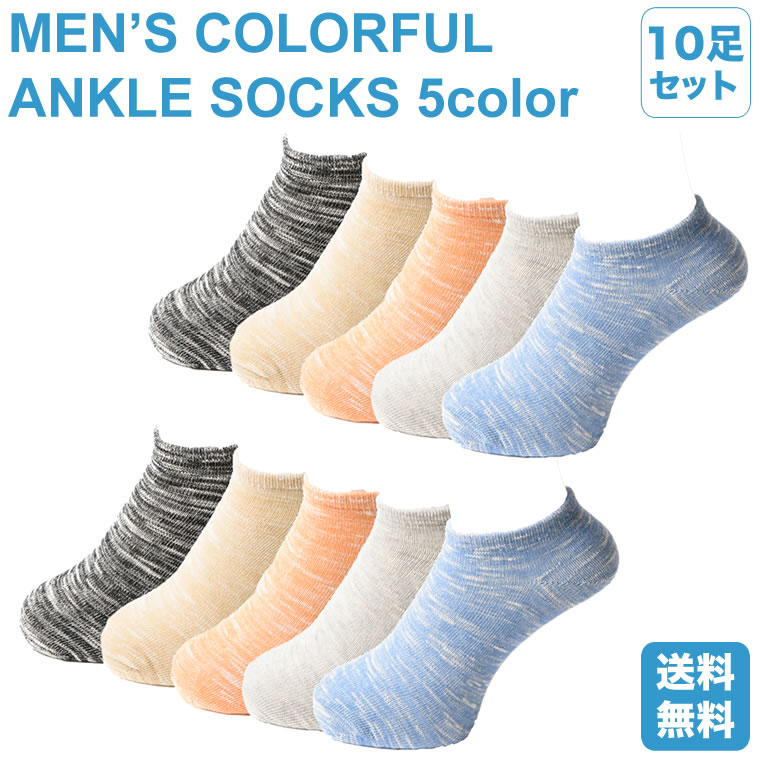 メンズ 靴下 カラフル ショート アンクルソックス 5カラー 10足セット 25cm-27cm