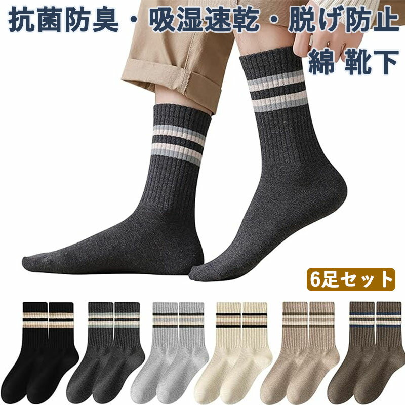 靴下 メンズ スポーツソックス 抗菌防臭・吸湿速乾・三重脱げ防止 メンズ靴下 綿 通気性 吸汗 消臭 伸縮 滑り止め 蒸れない スニーカー ソックス ランニング 登山 通勤 通学 6足セット 四季適用