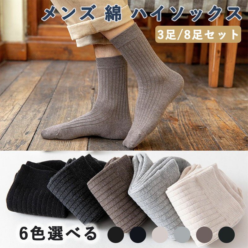 メンズ ハイソックス 秋冬 秋モデル 無地 コットンソックス ビジネスソックス 綿 靴下 ビジネス 高品質 3足/8足組 6色 抗菌 防臭 吸水速乾 紳士用 靴下セット ソックス 24-26cm
