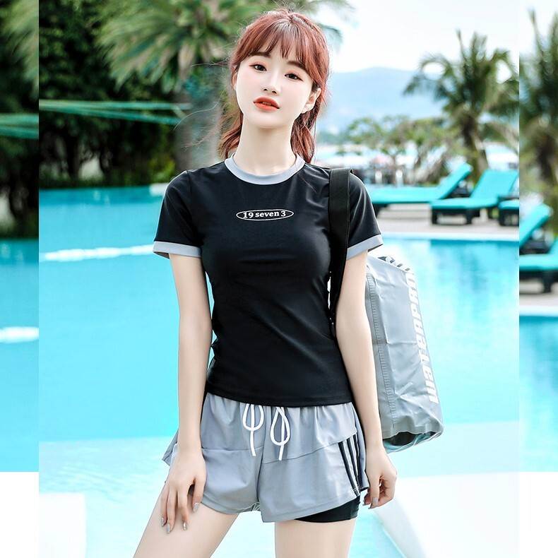 【P2倍&クーポン有】 水着 スイムウェア 短パン カジュアル 体系カバー 脚長 10代 大人 無地 20代 30代 体系カバー 半袖 ショートパンツ 体系カバー水着 パッド付き ワンピース水着 40代 大人っぽい 2点セット 大人可愛い 紫外線対策 シンプル 着痩せ