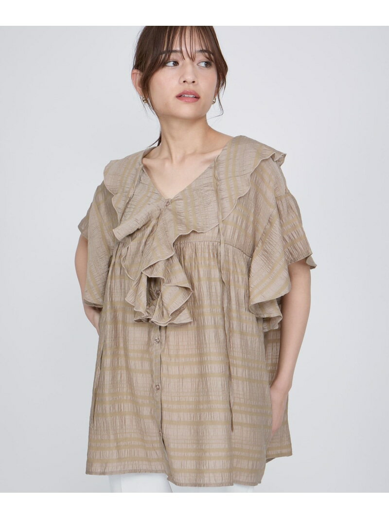【SALE/60%OFF】シアーシャーリングラッフルブラウス≪洗濯機で洗える≫ QUEENS COURT クイーンズコート トップス シャツ・ブラウス ブラウン ホワイト【RBA_E】[Rakuten Fashion]