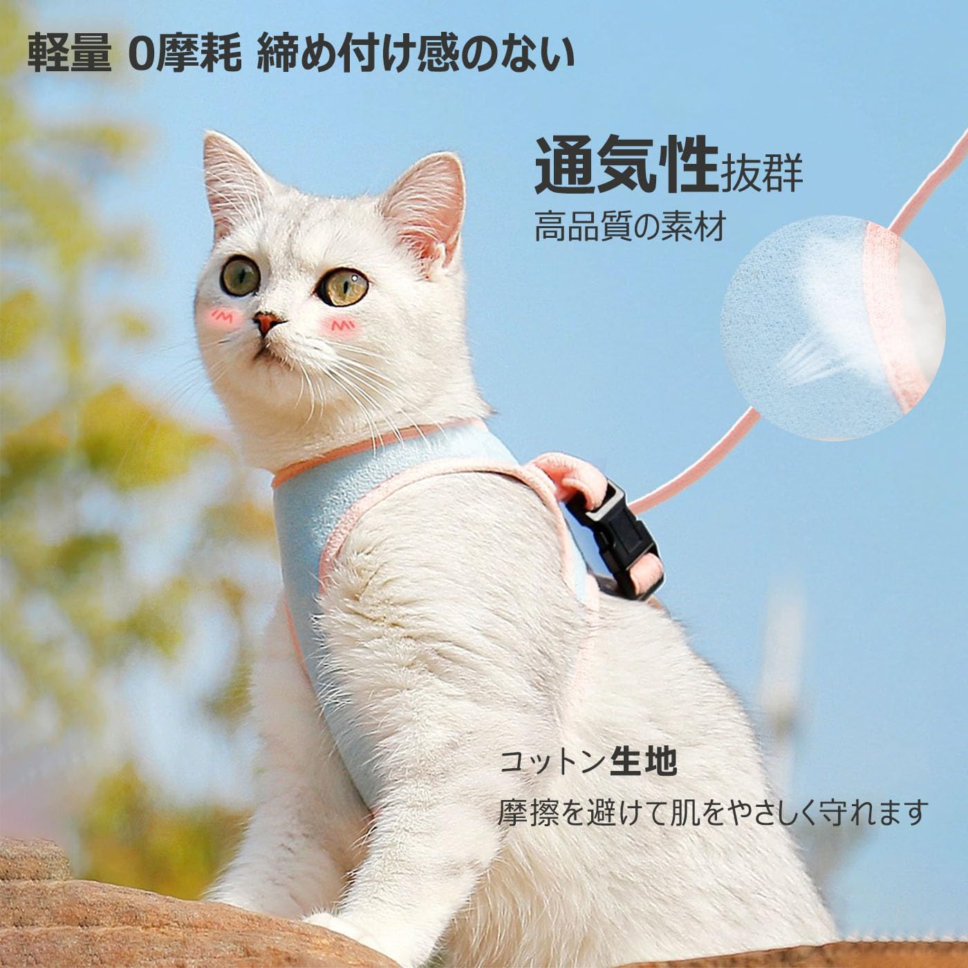 ハーネス 猫 外れにくい 可愛い リード 散歩 おでかけ ペット 用品 チェスト ストラップ チェーン 調節可能 ブルー オレンジ パープル