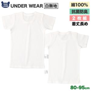 肌着 ベビー キッズ 2枚セット 2枚組 フライス 抗菌防臭 丸首 クルーネック 半袖 アンダーウェア 子供 ( 80-95cm ) 80cm 90cm 95cm オフホワイト 白 無地 キッズ