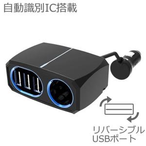 カシムラ セパレートソケット 3リバーシブルUSB 自動判定 7.2A