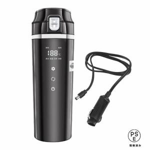 車載用ポット 車載電気ケトル 12V/24V カーポット 車載 カップ 温度表示 304ステンレス鋼 旅行暖房マグカップ 魔法瓶 車用湯沸かし器 車中泊 旅行用 携帯便利 黒