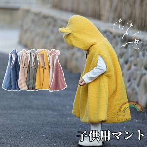 ポンチョ キッズ 防寒 もこもこ コート アウター ケープ フード付き クマ耳 アニマル ボア 着る毛布 可愛い 無地 動物 ギフト プレゼント 誕生日 キッズポンチョ