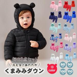 2025年コレクション!旬の3点セット!ベビー アウター ダウン キッズ 子供 赤ちゃん 冬服 防寒着 ジャケット コート 中綿 くま耳フード付き 女の子 男の子