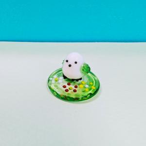 ガラス細工 シマエナガ切り株ペア ミニチュア 雑貨 置物 小物 鳥