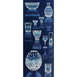 kontex コンテックス フェイスタオル 布ごよみ 犬ノ湯 ブルー 約33×100cm
