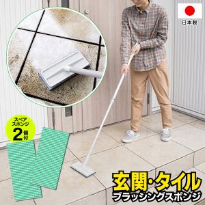 アズマ公式 玄関タイルブラシ スポンジ F水切り 付 (スペア2枚付) 伸縮 全長68〜110cm ライトグレー 床 玄関掃除ブラシ モップ デッキブラシ ベランダ AZ297
