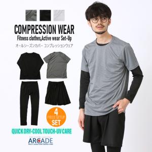 半額 コンプレッション ウェア 4点セット トップス インナー メンズ トレーニングウェア 半袖Tシャツ 長袖カットソー フルレングス レギンス ハーフパンツ/爆買