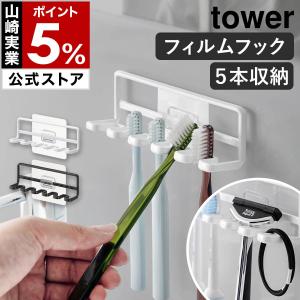 山崎実業 公式 タワー フィルムフック差し込み式歯ブラシ&チューブホルダー W9 tower 歯ブラシホルダー 歯磨き粉 浮かせる 1495 1496