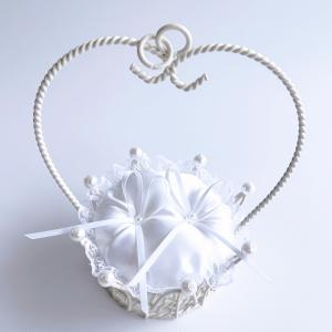 オーバル型バスケットのリングピロー 持ち手付き 結婚式 リングガール リングボーイ かご 白 カゴ付き 持ち運び 子ども